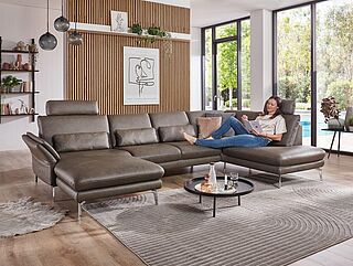 Comfortmaster zeichnet sich durch Modernität, Qualität, Funktionsstärke und Komfort aus. Dazu gehen die Möbel der Marke stets mit mehreren Optionen der Individualisierung einher. Drei Sitzqualitäten, die preisgleich lieferbar sind, gegen Mehrpreis erhältliche elektrische Funktionen für noch mehr Komfort und eine attraktive Stoff- und Lederauswahl - gestalten Sie die Ledercouch ganz nach Ihren Vorlieben!