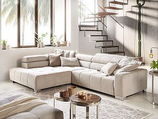 Gönnen Sie sich zu dieser Polsterecke doch einen manuellen Sitzvorzug, Kissen und weitere Funktionen gegen Mehrpreis. Selbstverständlich gibt es zu dieser Polsterecke auch eine attraktive Bezugsauswahl sowie einen großen Typenplan.