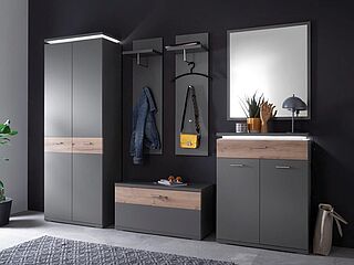 Polstergarnitur Julie, Bezug Stoff Lederoptik Cloud anthrazit, Metallfuß schwarz matt, best. aus einem 3-Sitzer und einem 2,5-Sitzer mit je 2 Armlehnen. Ohne Kopfstütze und Zierkissen.