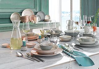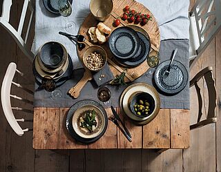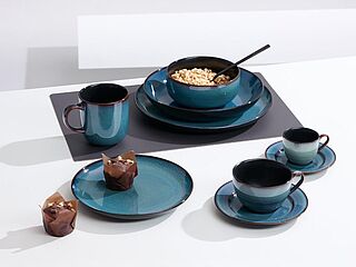Die Kombination von organischen Formen und scheinbar zufälligen Mustern, die handaufgetragene Glasur in den Trendfarben Sand, Anthrazit, Grün und Blau machen jedes Produkt zum Unikat. Bringen Sie mit diesem Kermik-Service MATERA eine Portion Extravaganz in Ihr Zuhause! Neben den beliebten Platztellern, Salatschalen und Bechern gibt es Matera jetzt auch für die rusitkale Frühstücks- und Kaffeetafel. Kaffee- und Teetassen mit passendem Untersatz, Schälchen für Müsli oder Gebäck ergänzen das Sortiment und sind mit allen anderen Produkten und Farben kombinierbar. Ohne Dekoration.