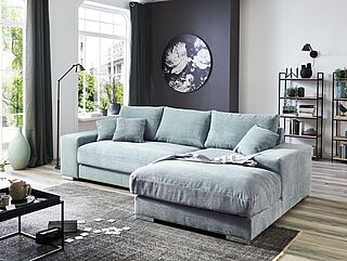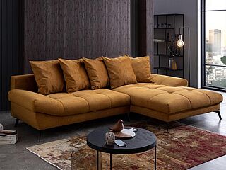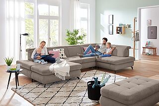 Weitere Funktionen für das Polstermöbel sind ebenso wie Kissen gegen Mehrpreis erhältlich. Passen Sie die Rundecke mit der großen Bezugsauswahl und dem Typenplan Ihrem Raumkonzept an.
