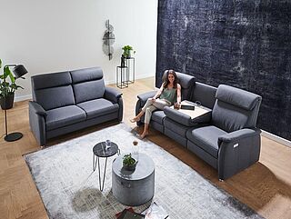 Dank des großen Typenplans können Sie das Comfortmaster Trapezsofa in vielen Details individuell an Ihren Bedarf und Geschmack anpassen. Auch mit motorischer Verstellung erhältlich.
