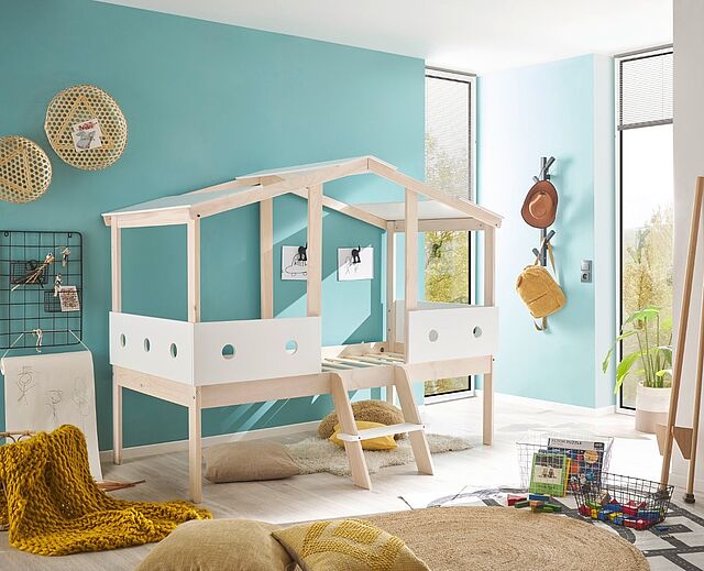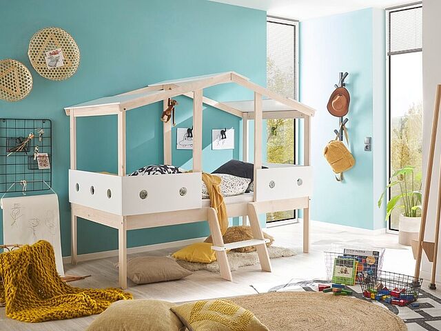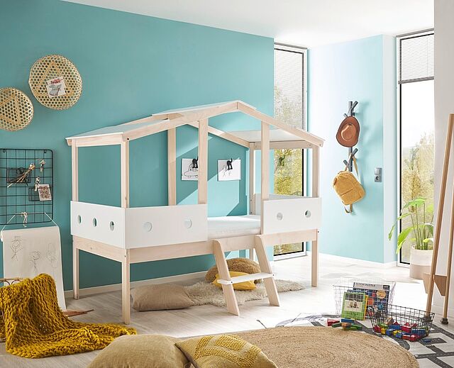 Hausbett Cortino, weiß/Kiefer Natur, inklusive Lattenrost, Liegefläche ca. 90 x 200 cm. Ohne Matratze und Deko.
